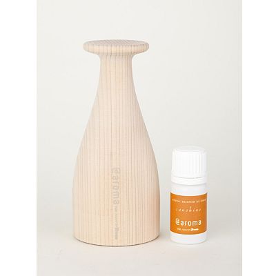 ヒノキの間伐材を主に使用したアロマディフューザーと、ヒノキの香りをブレンドしたエッセンシャルオイルのセット。 シンプルなフォルムのデザインで、ウッドディフューザーの中にオイルボトルを収納できる仕様。 オレンジやレモン、ユズなどがブレンドされた太陽を思わせる明るく優しい香り。 微笑みと穏やかな時間をもたらしてくれます。