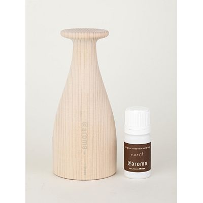 ヒノキの間伐材を主に使用したアロマディフューザーと、ヒノキの香りをブレンドしたエッセンシャルオイルのセット。 シンプルなフォルムのデザインで、ウッドディフューザーの中にオイルボトルを収納できる仕様。 ヒバ、クラリセージ、パチュリなどがブレンドされた土を思わせるような豊かで深い香り。 落ち着きと静寂をもたらしてくれます。